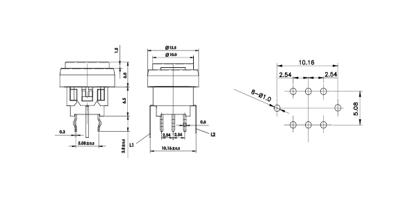 · 12.5 mm x 12.5mm x 12.5 mm LED the switch