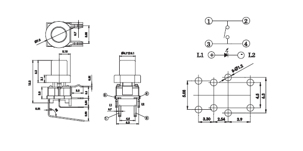 · 7.5 mm 4.7x mm LED the switch