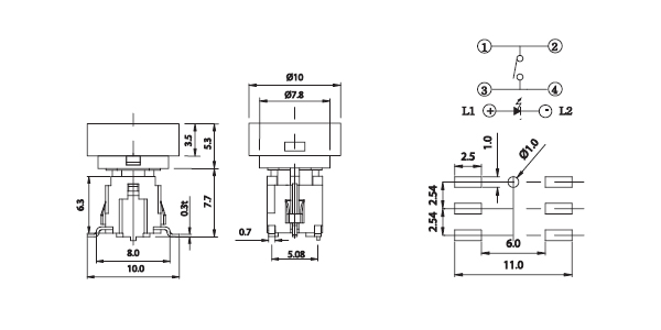 · 10 mm x 10 mm x 5.3 mm LED the switch
