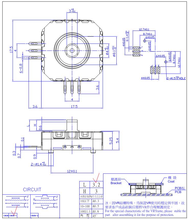 最大工作电压:Linear Taper B :AC 50V or DC 5.0V