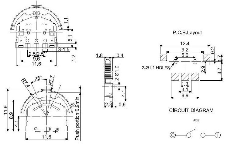 7.CONTACT RESISTANCE: ≤ 300 mΩ (select) ≤ 1Ω (left & right)