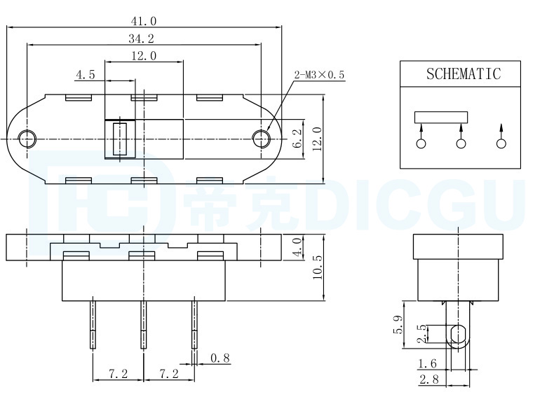 | 外形尺寸:41X12X10.5 | VS011-0电气规格:10A 250VAC | 接触电阻(CR):≤100mΩ |