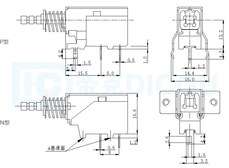 4. 端子代号:“N”表示焊线型端子;“P”表示插P.C.B型端子。