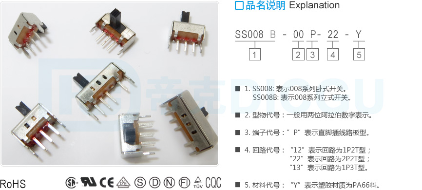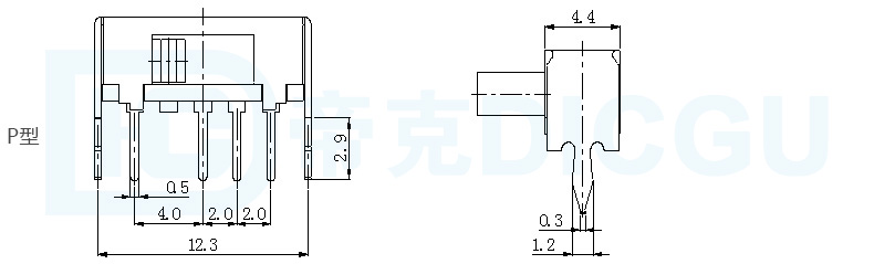 | 外形尺寸:8.6X4.7X4.3 | 电气规格:0.3A / DC300V | 接触电阻(CR):≤50mΩ |