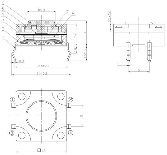产品规格:12×12×H/H=4.3mm-17mm