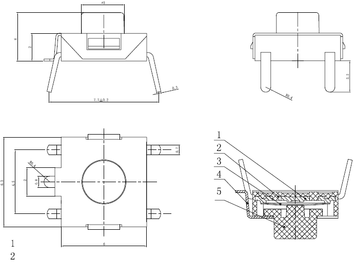 产品高度:H=2.5/2.7/3.0/3.1/3.4/3.7/3.8/4.3/5/5.5/6/7mm