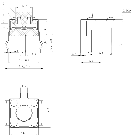 产品规格:6×3.5×H/H=4.3mm/5mm