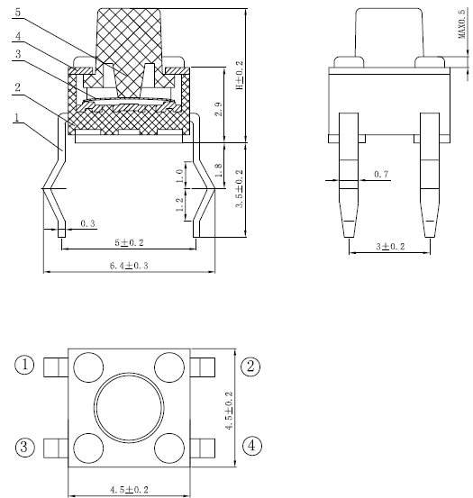 产品尺寸:4.5×4.5×H/ H=3.8/4.3/4.5/5/5.5/6/7mm