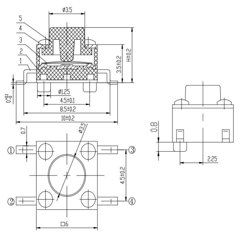 产品规格:6×6×4.3-13mm