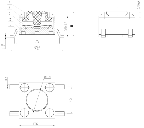产品规格:6×6×H/H=4.3mm-12mm
