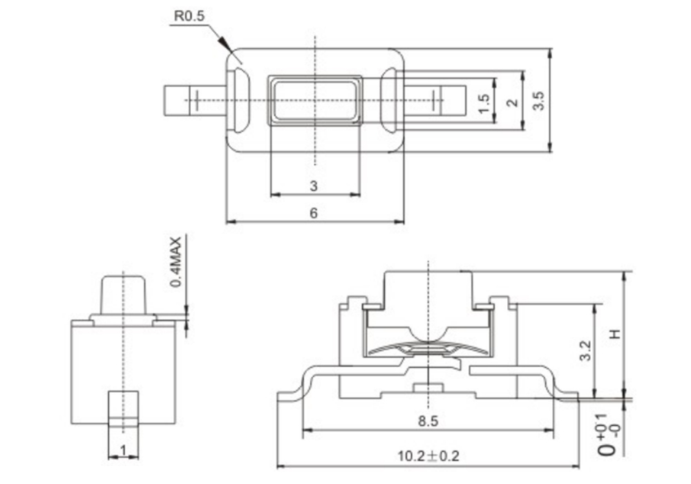 产品规格:6×3.5×H/H=4.3mm/5mm