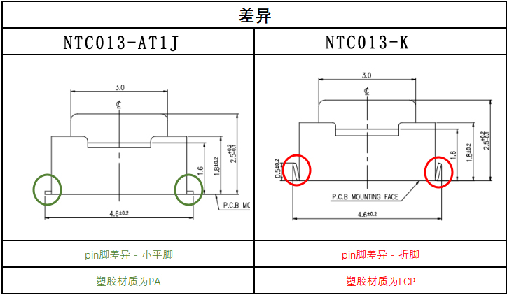 | 2 | NTC013-AT1J-A260T | SMT | 垂直 | 4.20x3.20x2.50mm | Single | 260 | 50,000 | Without |