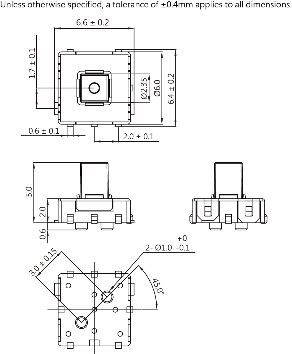 SPECIFICATIONS Operating frequency(electrical): 120 Operation / mim Contact resistance: 200m Ω(max) Insulation resistance(Or at 250 VDC) 100M Ω(Min) Service life(electrical) Min. 200,000 Operations
