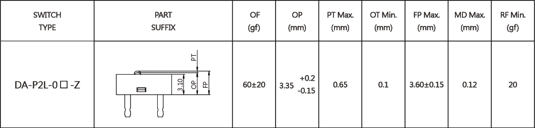 产品型号:DA-P2L-0P-Z DA-P2L-0T-Z