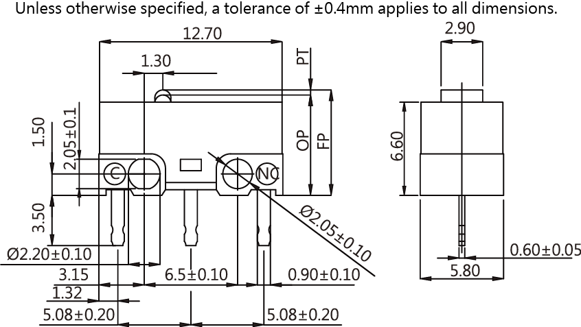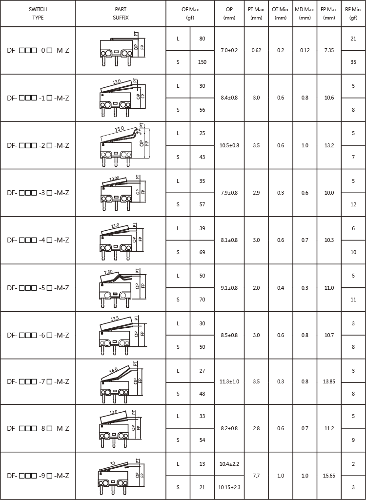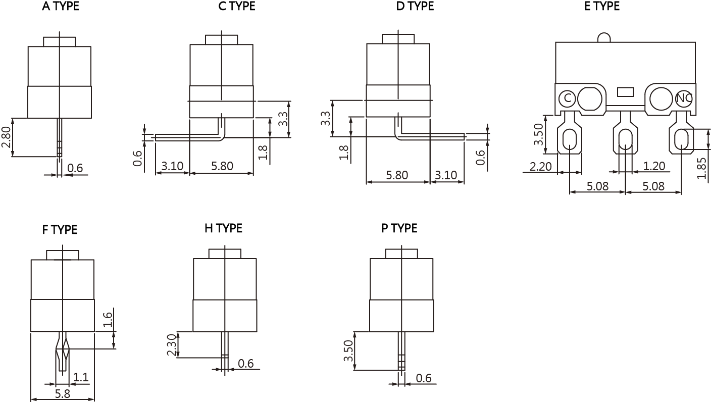 SPECIFICATIONS Operating frequency(mechanical): 120 Operation / mim Operating frequency(electrical): 10~30 Operation / mim Contact resistance: 100m Ω(max) Insulation resistance(at 500 VDC) 100M Ω(Min) Service life(mechanical) Min. 1,000,000 Operations Service life(electrical) 1A/3A-Min.10,000 Operations
