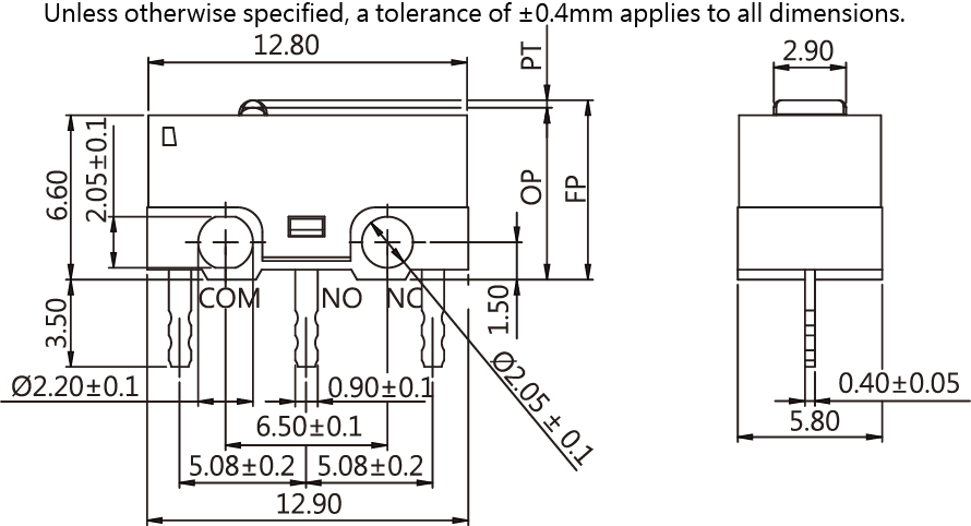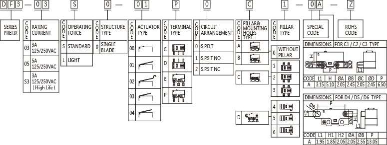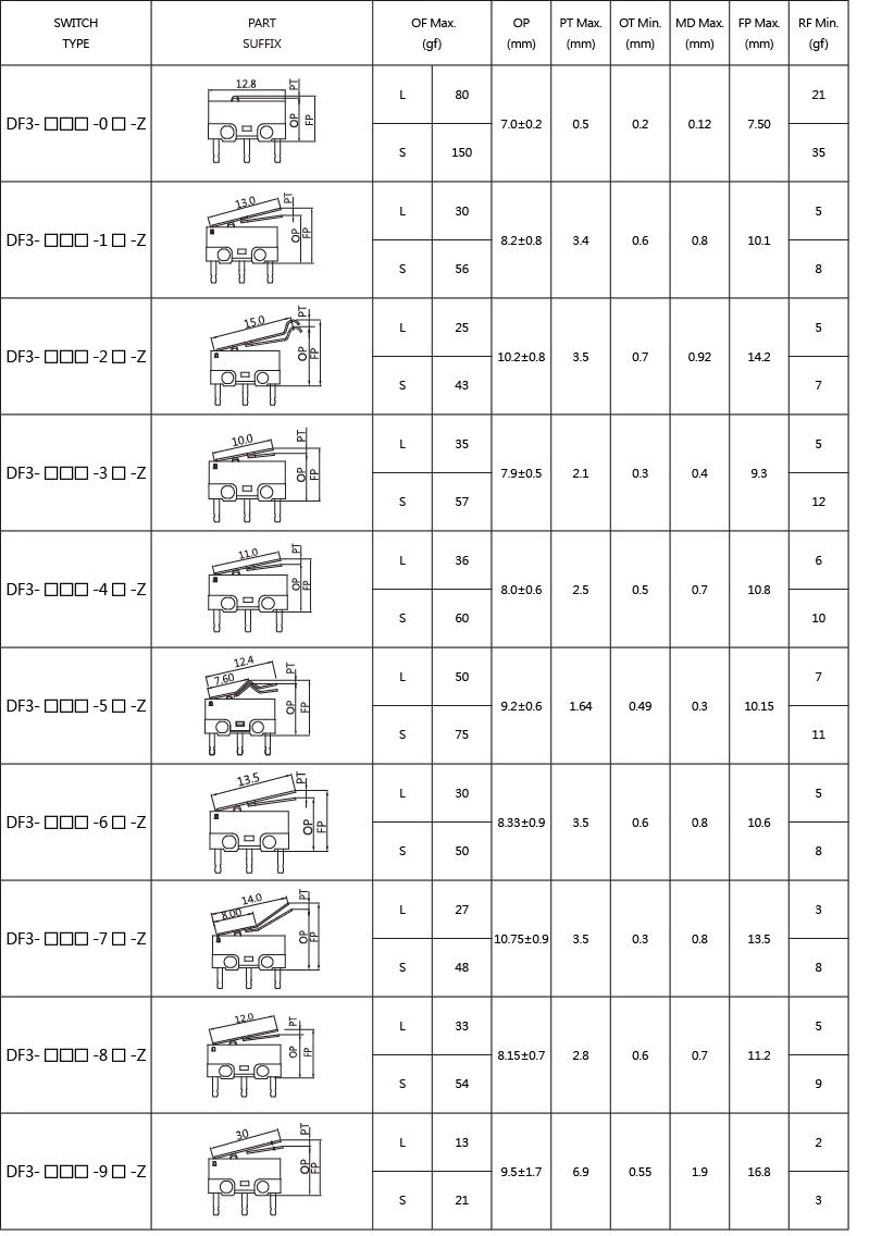 SPECIFICATIONS Operating frequency(mechanical): 120 Operation / mim Operating frequency(electrical): 10~30 Operation / mim Contact resistance: 100m Ω(max) Insulation resistance(at 500 VDC) 100M Ω(Min) Service life(mechanical) Min.5,000,000 Operations Service life(electrical) Min.10,000 Operations
