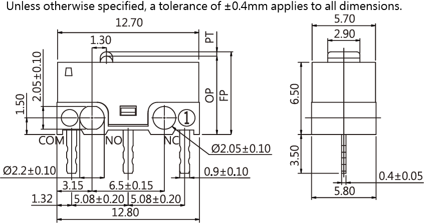 SPECIFICATIONS Operating frequency(mechanical): 120 Operation / mim Operating frequency(electrical): 10~30 Operation / mim Contact resistance: 100m Ω(max) Insulation resistance(at 500 VDC) 100M Ω(Min) Service life(mechanical) Min.1,000,000 Operations Service life(electrical) 3A-Min.10,000 Operations