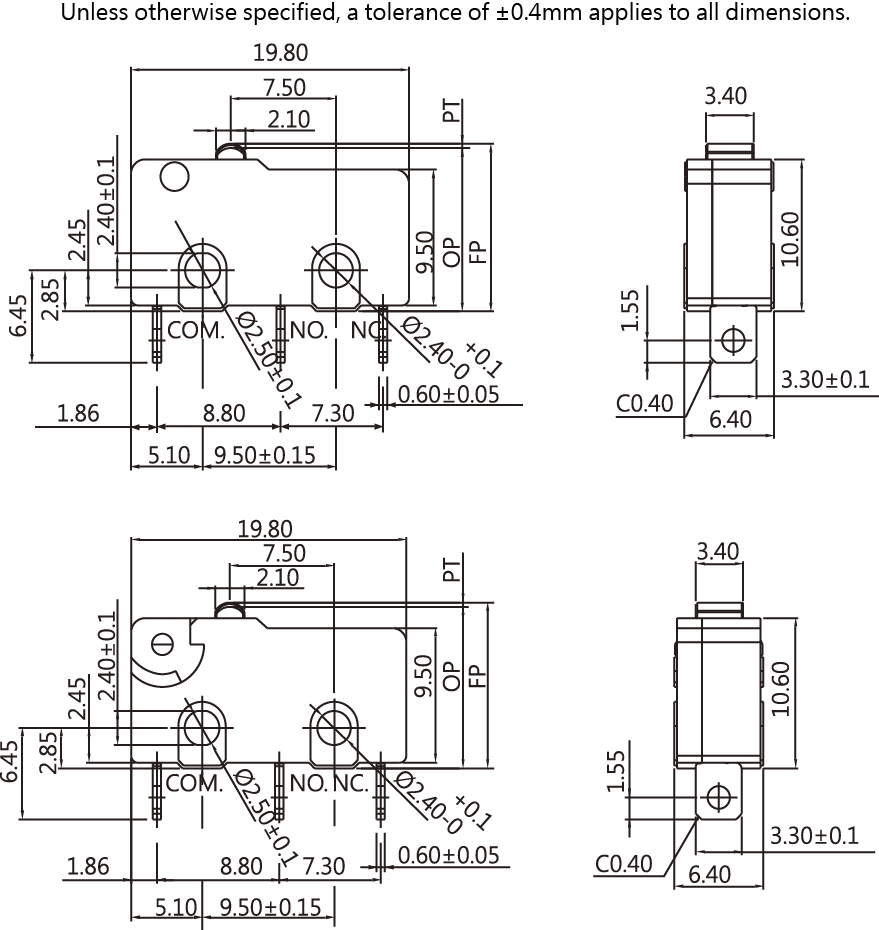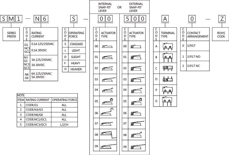 0.1A/3A/6A 125/250VAC ;0.1A/3A/5A 30VDC