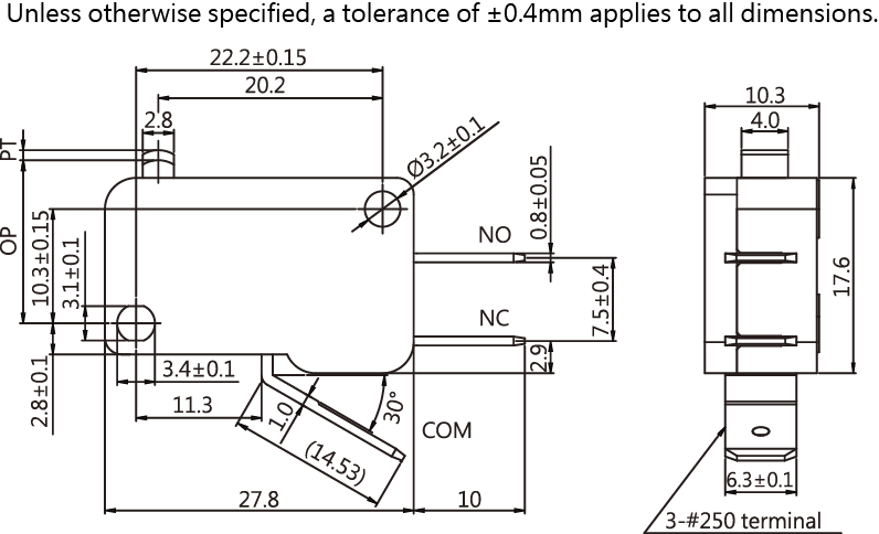 SPECIFICATIONS Operating frequency(mechanical): 120 Operation / mim Operating frequency(electrical): 10~30 Operation / mim Contact resistance: 30m Ω(max) Insulation resistance(at 500 VDC) 100M Ω(Min) Service life(mechanical) Min. 500,000 Operations Service life(electrical) Min. 10,000 Operations