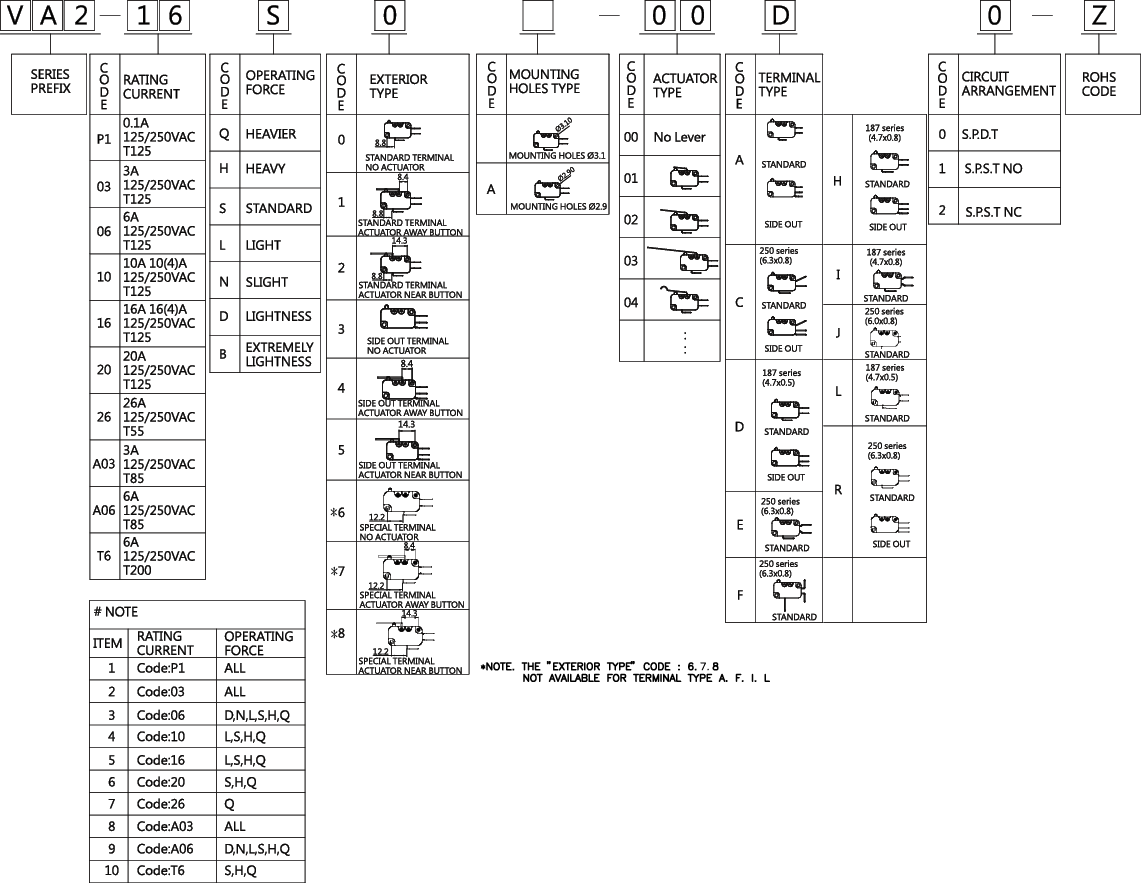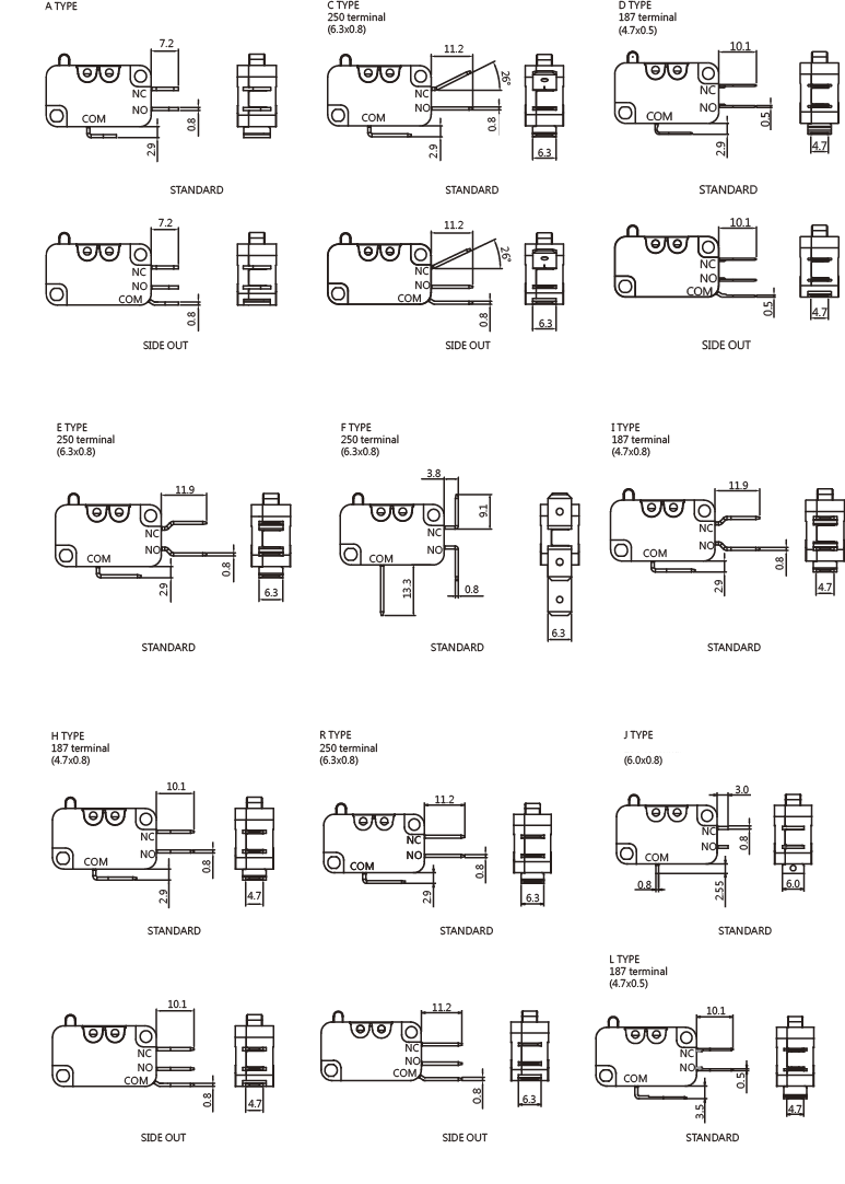 SPECIFICATIONS Operating frequency(mechanical): 120 Operation / mim Operating frequency(electrical): 10~30 Operation / mim Contact resistance: 100m Ω(max) Insulation resistance(at 500 VDC) 100M Ω(Min) Dielectric strength(50 - 60 Hz) 1500VAC RMS Service life(mechanical) Min.1000000 Operations Service life(electrical) Min.10000 Operations