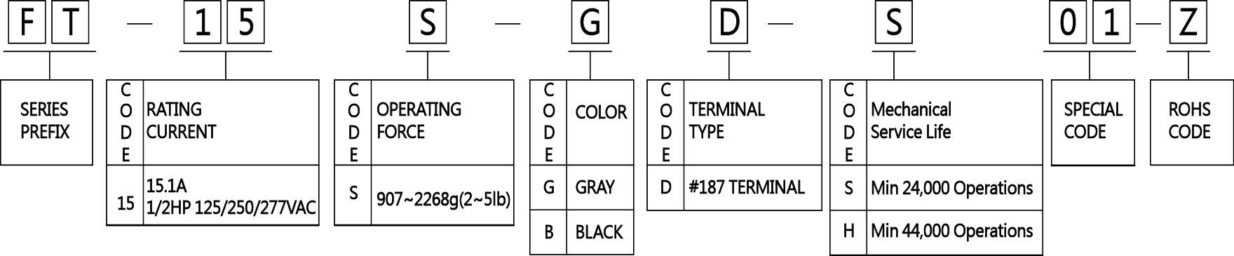 SPECIFICATIONS Operating force: 2~5lb(907~2268gf) Operation / mim Operating frequency(mechanical): 30 Operation / mim Operating frequency(electrical): 10~30 Operation / mim Contact resistance: 300m Ω(max) Insulation resistance(at 500 VDC) 100M Ω(Min) Service life(mechanical) Min. 24,000 Operations Service life(electrical) Min. 6,000 Operations
