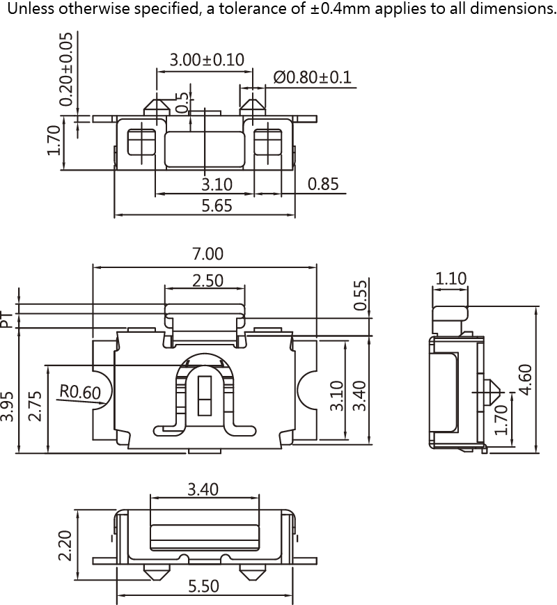 SPECIFICATIONS Operating frequency(electrical): 30 Operation / mim Contact resistance: 3 Ω(max) Service life(electrical) Min.200,000 Operations