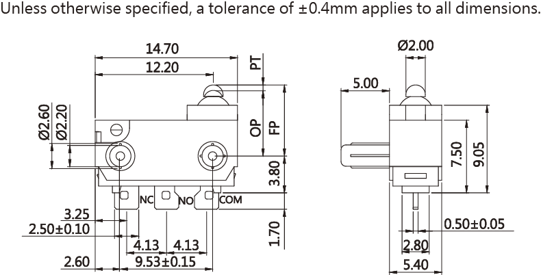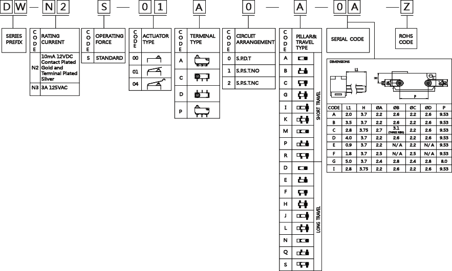 SPECIFICATIONS Operating frequency(mechanical): 120 Operation / mim Operating frequency(electrical): 10~30 Operation / mim Contact resistance: 100m Ω(max) Insulation resistance(at 500 VDC) 100M Ω(Min) Service life(mechanical) Min. 500,000 Operations Service life(electrical) 3A-Min. 6,000 Operations