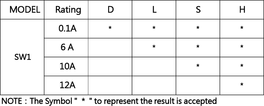 SPECIFICATIONS Operating frequency(mechanical): 120 Operation / mim Operating frequency(electrical): 10~30 Operation / mim Contact resistance: 300m Ω(max) Insulation resistance(at 500 VDC) 100M Ω(Min) Service life(mechanical) Min. 2,000,000 Operations Service life(electrical) Min.10,000 Operations