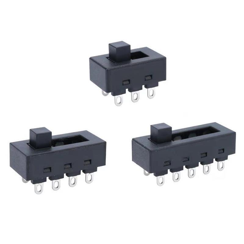 2、触点数和排列方式:滑动开关通常有多个触点,这些触点的数量和排列方式因不同的应用而有所不同。例如,有些滑动开关可以控制多个电路,而另一些则只能控制一个电路,用户需要根据具体应用需求来选择合适的触点数和排列方式。