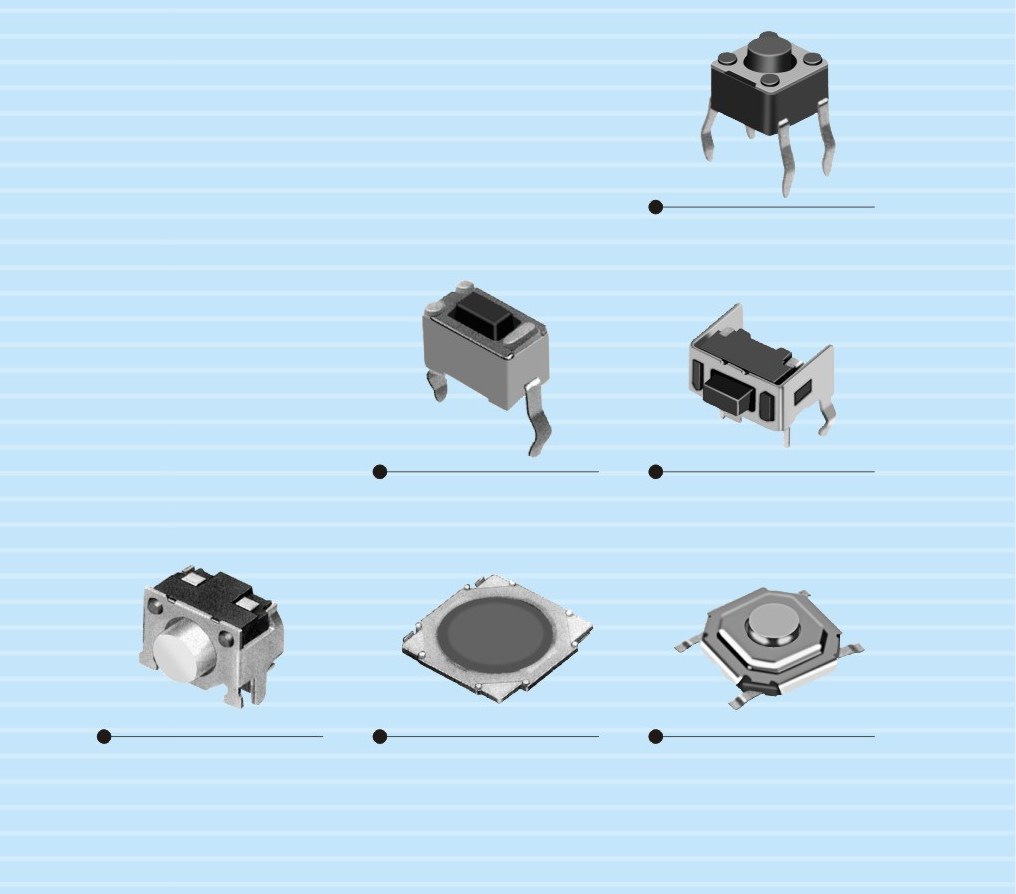 轻触开关根据不同的分类标准可以分为多种类型,以下是其中的一些常见种类: